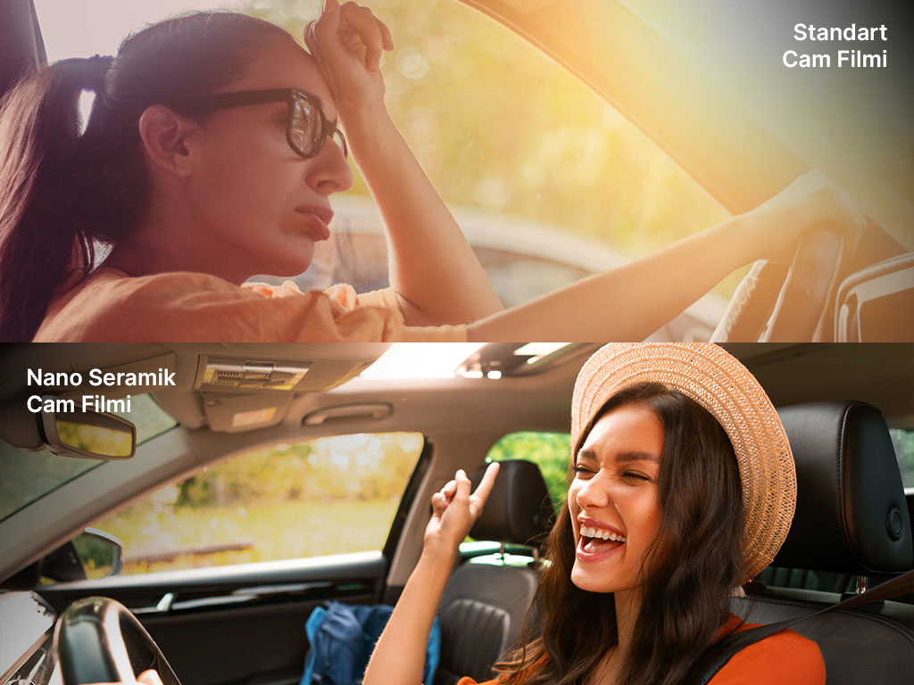 Nano Seramik Cam Filmi mi, Standart Cam Filmi mi Daha İyi? Nano seramik filmler, ısı ve UV ışınlarını engelleyerek uzun ömürlü konfor ve net görüş sağlar.